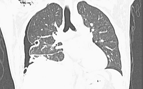 2)胸部CT:右侧胸腔积液,较前明显好转;右侧少许感染(图9)。