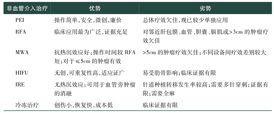 肝癌的非血管介入治疗总结见表1。
