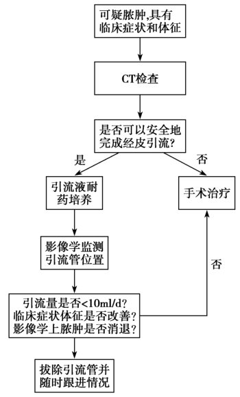 无论何种方式的引流,其根本的目的都是希望能够迅速而有效地清除脓腔内容物,以达到治疗目的。经皮引流和外科引流还是有一定的原则和适应证可以遵循的。