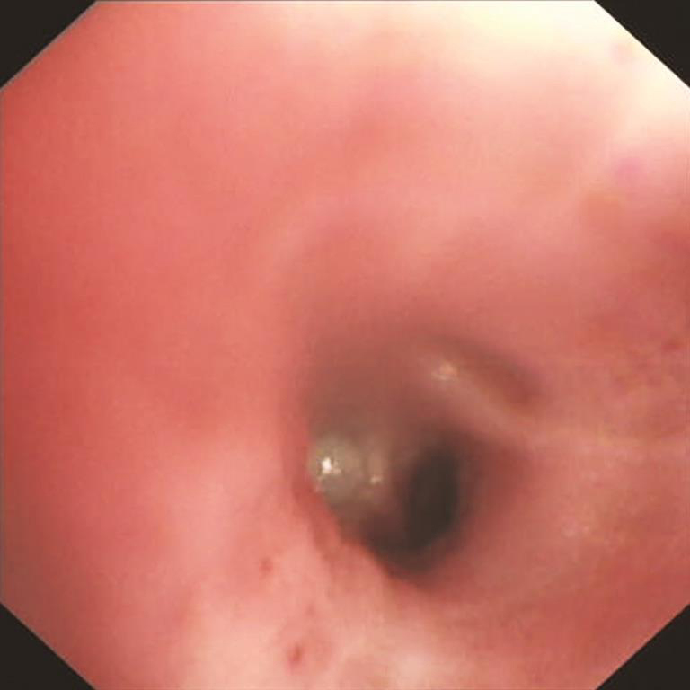 本例患者胸部CT提示右肺阻塞性肺炎,所以可行支气管镜进一步明确诊断。此外,通过支气管肺泡灌洗液的检查还可明确或排除感染性病变。