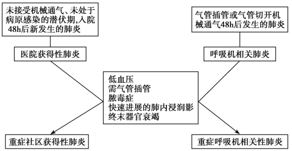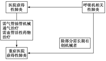 图1医院获得性肺炎/呼吸机相关性肺炎及重症医院获得性肺炎/重症呼吸机相关性肺炎定义示意图