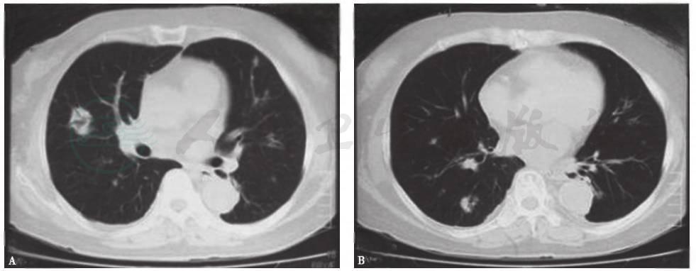 图3肺转移性腺癌胸部CT表现