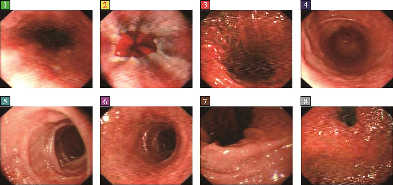 电子胃镜:胃底部散在糜烂,胃窦部可见多发糜烂,余未见明显异常(图2)。